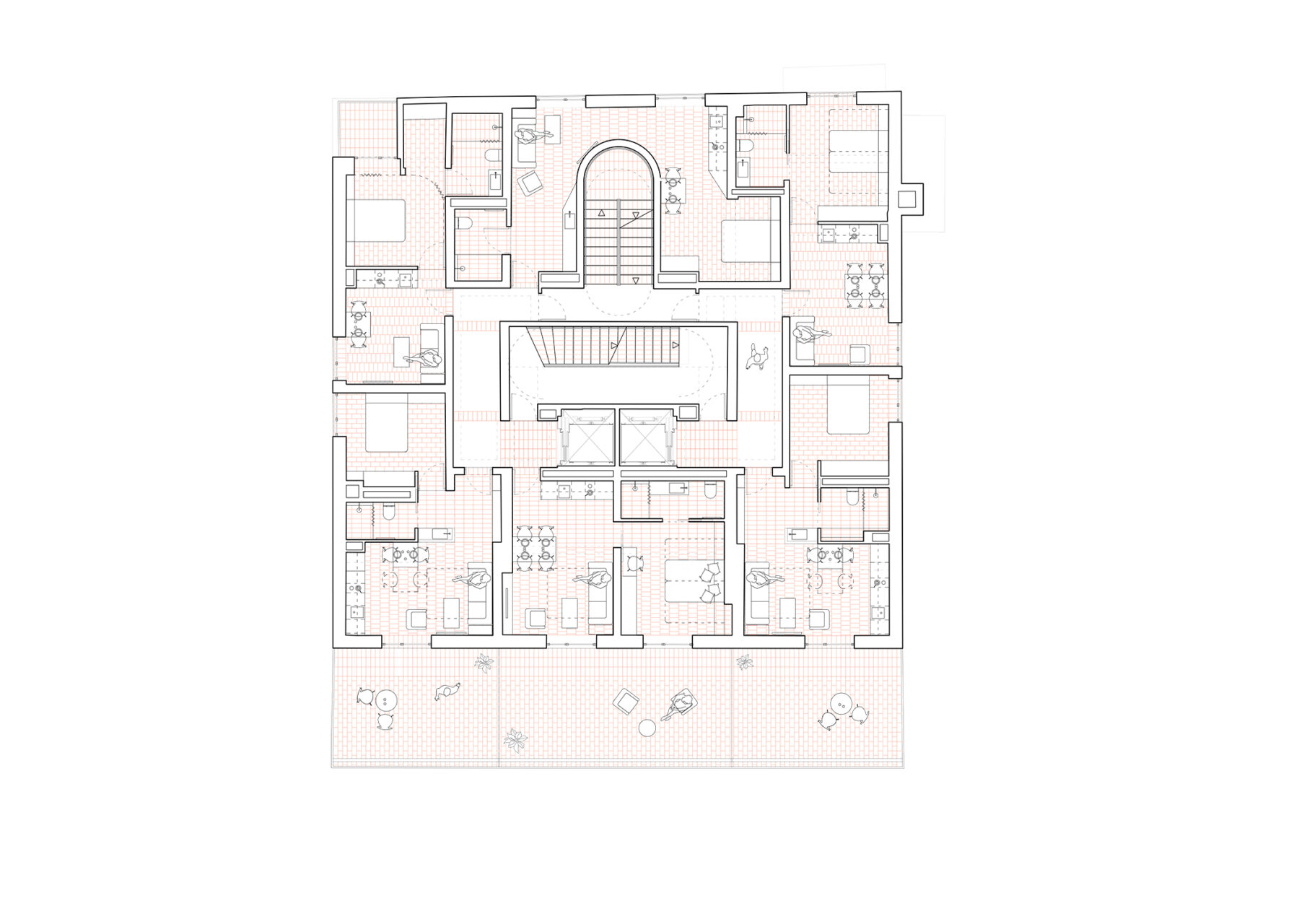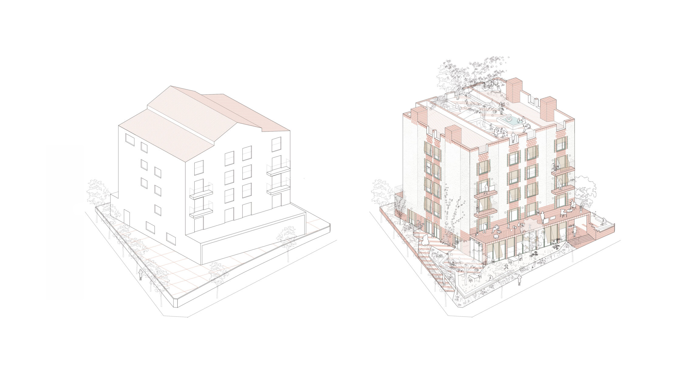 El nou projecte d'apartaments és la rehabilitació d'un edifici existent abandonat, i busca establir un diàleg amb aquests primers estiuejants i els seus palaus de principis del segle XX a nivell conceptual i material, proposant un model de vida alternatiu al turisme de masses: un model lent, proper i local, desestacionalitzat i arrelat a la tradició balneària i arquitectònica original del lloc.